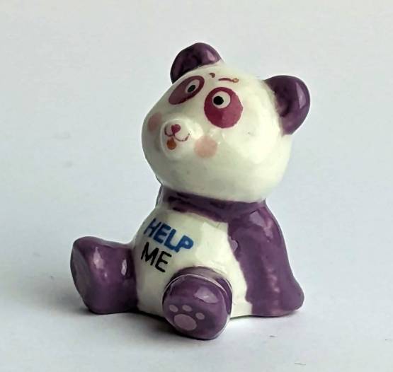 Diese entzückende Keramikfigur in Form eines Panda ist ein echter Hingucker in jeder Sammlung. Der kleine Panda ist liebevoll von Hand bemalt und zeigt sich in einer schwarz-weißen Farbgebung mit süßem Blick und einem Schriftzug "Help Me" auf seinem Bauch. Mit einer Größe von nur 2 cm ist die Figur besonders dekorativ und kann überall platziert werden.