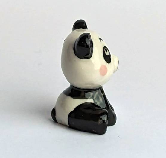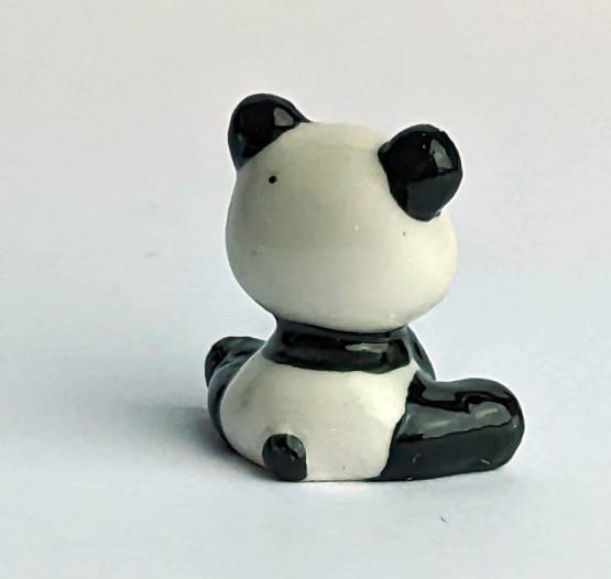 Die künstlerische Gestaltung und die detailreiche Bemalung machen jede Figur zu einem Unikat. Der Panda sitzt entspannt da, was ihn besonders anschaulich und sympathisch macht.