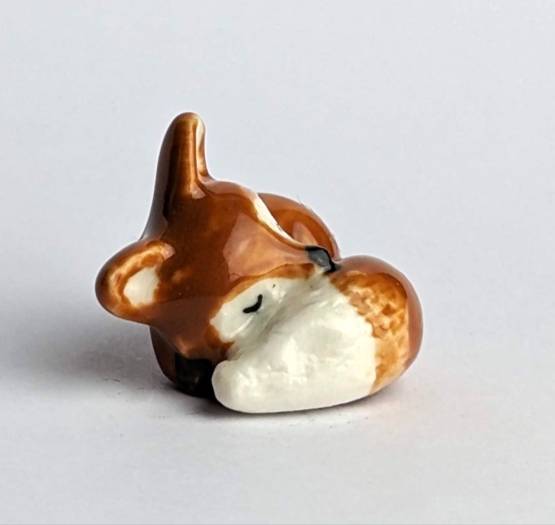 Sie suchen nach einem niedlichen und charmanten Accessoire für Ihr Zuhause? Dann haben wir genau das Richtige für Sie: unsere handbemalte 2 cm große Keramikfigur in Form eines Fuchskindes.