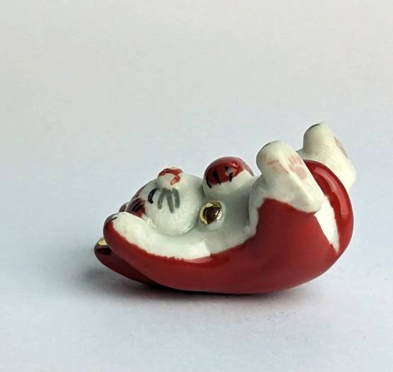 Die rot-weiße Farbkombination ist besonders auffällig und bringt eine fröhliche Atmosphäre in jeden Raum. Die goldene Verzierungen verleihen der Keramikfigur das gewisse Extra und machen sie zu einem echten Hingucker.