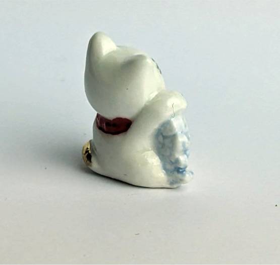 Verleihen Sie Ihrem Zuhause oder Büro einen Hauch von Glück, Wohlstand und Intelligenz mit dieser wunderschönen handbemalten Keramikfigur der chinesischen "Winke Katze" mit grauen Fisch. Bestellen Sie jetzt und bringen Sie ein Stück asiatische Kultur in Ihr Zuhause.