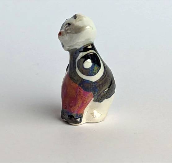 Die handbemalte Keramikfigur in der Form einer Katze ist ein einzigartiges Kunstwerk, das jeder Sammler und Katzenliebhaber in seinem Zuhause haben sollte. Mit einer Größe von nur 2 cm ist diese Figur klein und zierlich, aber dennoch voller Details und Charakter.