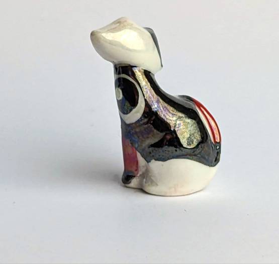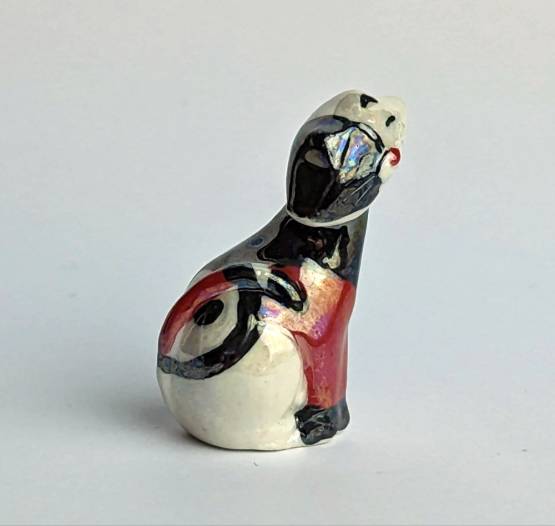 Diese handbemalte Keramikfigur Katze ist eine perfekte Wahl für Katzenliebhaber und Sammler von handbemalten Keramikfiguren. Durch die Kombination aus Weiß, Schwarz und Rot ist sie ein besonderes Highlight in jeder Sammlung und ein echter Hingucker in jedem Zuhause. Kaufen Sie jetzt Ihre handbemalte Keramikfigur Katze und bereichern Sie Ihre Sammlung mit einem einzigartigen Kunstwerk.