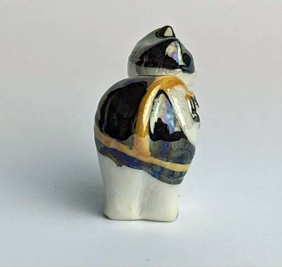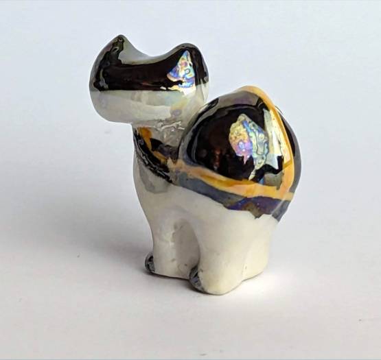 Die handbemalte Keramikfigur in der Form einer Katze ist ein einzigartiges und charmantes Kunstwerk, das jeder Sammler und Katzenliebhaber in seinem Zuhause haben sollte. Mit einer Größe von nur 2 cm ist diese Figur klein und zierlich, aber dennoch voller Details und Charakter.