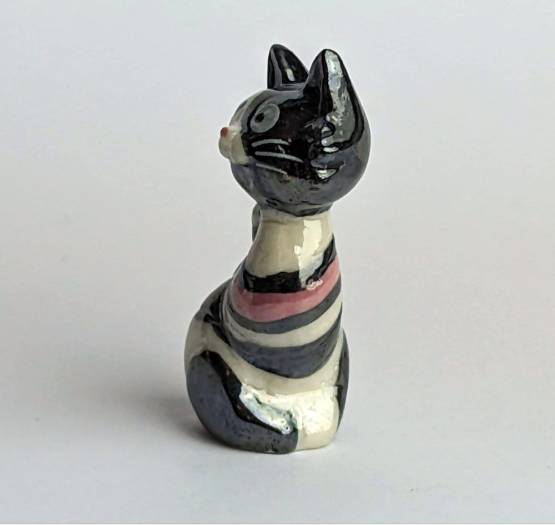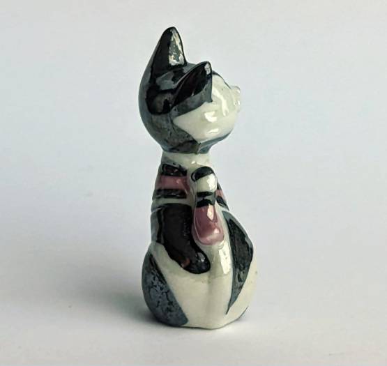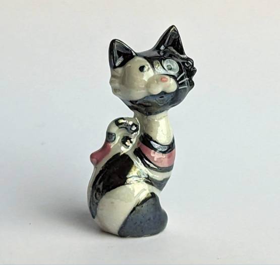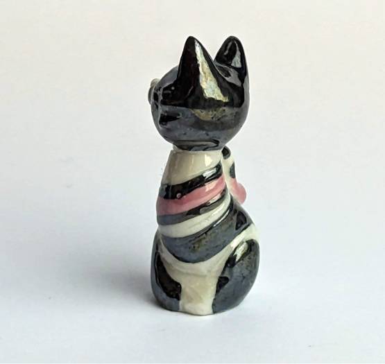 Erwerben Sie jetzt Ihre eigene handbemalte Keramikfigur Katze in Weiß, Schwarz und Pink und bereichern Sie Ihre Sammlung mit einem einzigartigen und unverwechselbaren Kunstwerk. Diese Figur ist eine perfekte Ergänzung für jede Sammlung von handbemalten Keramikfiguren und ein echter Hingucker in jedem Zuhause. Entdecken Sie die Schönheit von Katzen durch diese einzigartige und liebevoll handbemalte Keramikfigur.