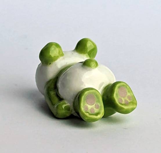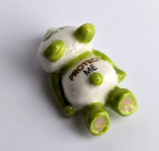 Diese berührende Keramikfigur in Form eines Panda ist ein einzigartiges Kunstwerk. Der liegende Panda wurde von einem erfahrenen Künstler liebevoll von Hand bemalt und zeigt sich in einer am Boden zerstörten Haltung, die die Verletzlichkeit und Not des Tieres widerspiegelt. Der Schriftzug "Rescue Me" auf seinem Bauch unterstreicht die Botschaft der Figur. Mit einer Größe von nur 2 cm ist die Figur besonders dekorativ und kann überall platziert werden.